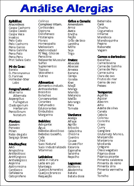 Prancha Análise de Alergias