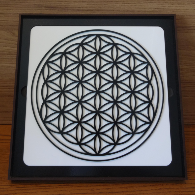 Descrição: Gráfico de geometria sagrada que simboliza o padrão fundamental da criação e da vida. Representa a harmonia entre todas as formas e frequências do universo, presente nas estruturas atômicas, biológicas e energéticas. É utilizado para equilibrar campos sutis, promover vitalidade e alinhar frequências vibracionais.