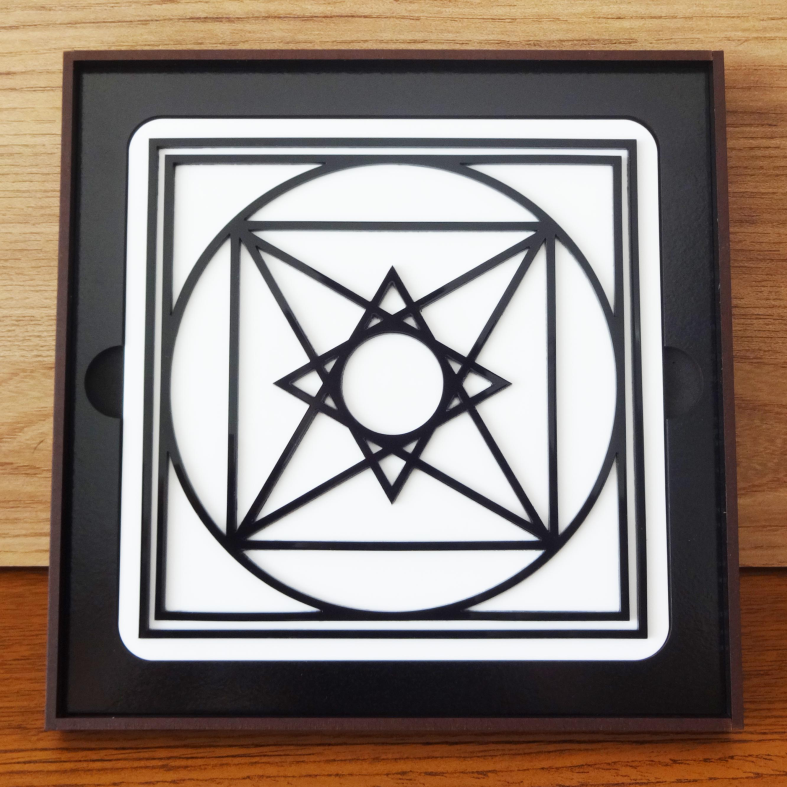 Descrição: Gráfico emissor baseado no Selo de Salomão, símbolo ancestral de proteção e equilíbrio. Sua estrutura dinâmica favorece a emissão de ondas harmônicas utilizadas em cromoterapia pulsada e trabalhos psíquicos. Atua na harmonização energética e na amplificação de intenções, com forte componente de proteção vibracional.