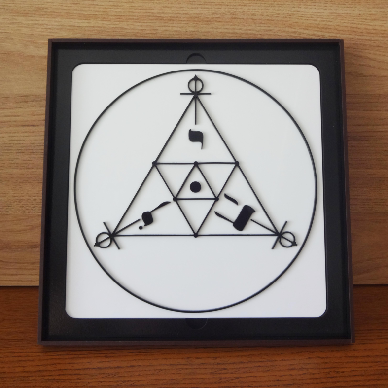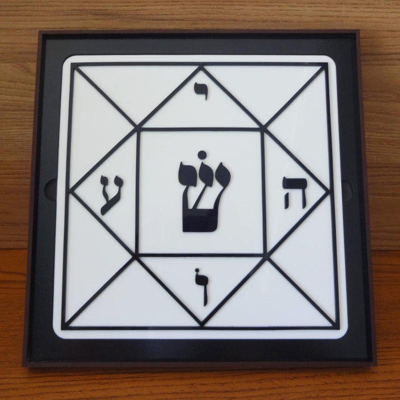 Descrição: Gráfico de proteção psíquica e espiritual associado à expressão hebraica que representa “o nome de Jesus nos Céus”. Atua como pantáculo místico de purificação e elevação vibracional, afastando influências do baixo astral e harmonizando o ambiente. Também auxilia nos processos de ascensão interior e conexão com planos superiores.