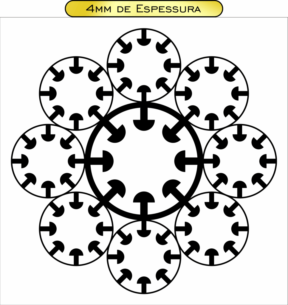 Descrição: Gráfico de geometria sagrada que simboliza o padrão fundamental da criação e da vida. Representa a harmonia entre todas as formas e frequências do universo, presente nas estruturas atômicas, biológicas e energéticas. É utilizado para equilibrar campos sutis, promover vitalidade e alinhar frequências vibracionais.