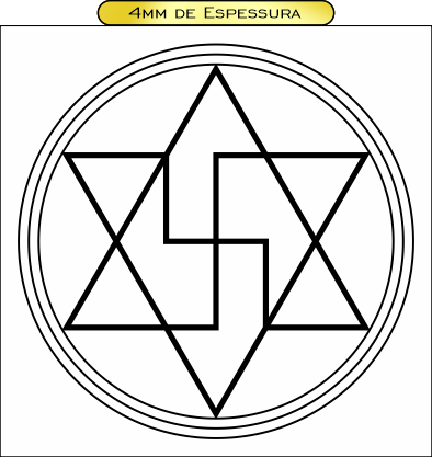 Descrição: Gráfico de proteção psíquica baseado no Selo de Salomão, utilizado para neutralizar influências negativas e eliminar estados de magia presentes em seres vivos. Atua como pantáculo emissor de ondas de forma equilibradoras e protetoras.