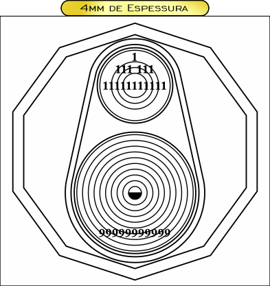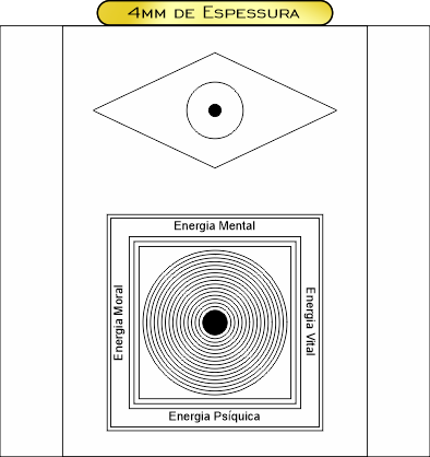 Descrição: É usado em radiestesia para proteção e harmonização energética. Ele combina símbolos tradicionais — como o Luxor e os Nove Círculos — formando um campo que ajuda a neutralizar energias negativas, estabilizar ambientes e clarear pesquisas radiestésicas.