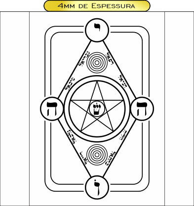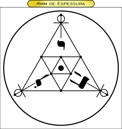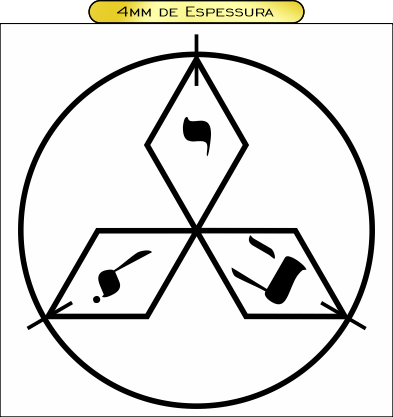 Descrição: Gráfico de proteção e reequilíbrio ambiental que atua sobre interferências psíquicas e telúricas. A presença de expressão sagrada em hebraico confere-lhe alta capacidade de neutralização de energias nocivas e estabilização do campo vibracional do ambiente.