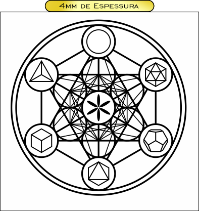 Descrição: Gráfico de geometria sagrada que representa o fluxo da energia divina através do arquétipo do Arcanjo Metatron. Formado por 13 esferas interligadas, simboliza a união das polaridades masculina e feminina e contém os sólidos platônicos, padrões fundamentais da criação. Atua na harmonização vibracional, equilíbrio energético e expansão da consciência.