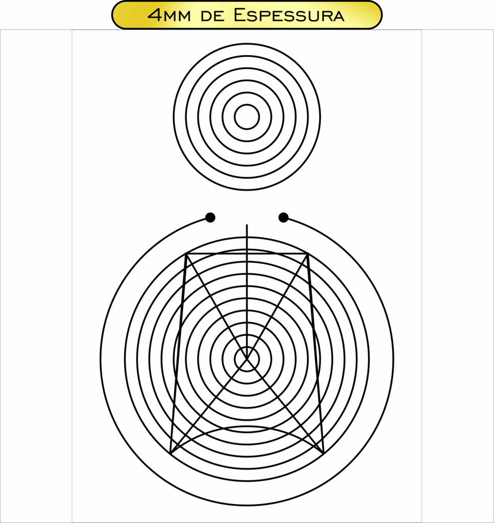 Descrição: Gráfico emissor derivado da sobreposição de duas circunferências tangentes, símbolo ancestral da união entre o céu e a terra. Representa a síntese entre o espiritual e o material, sendo considerado uma “semente de geometria sagrada”. Quando combinado ao Selo de Salomão, amplia seu espectro vibracional, tornando-se uma poderosa fonte de emissão e harmonização energética.
