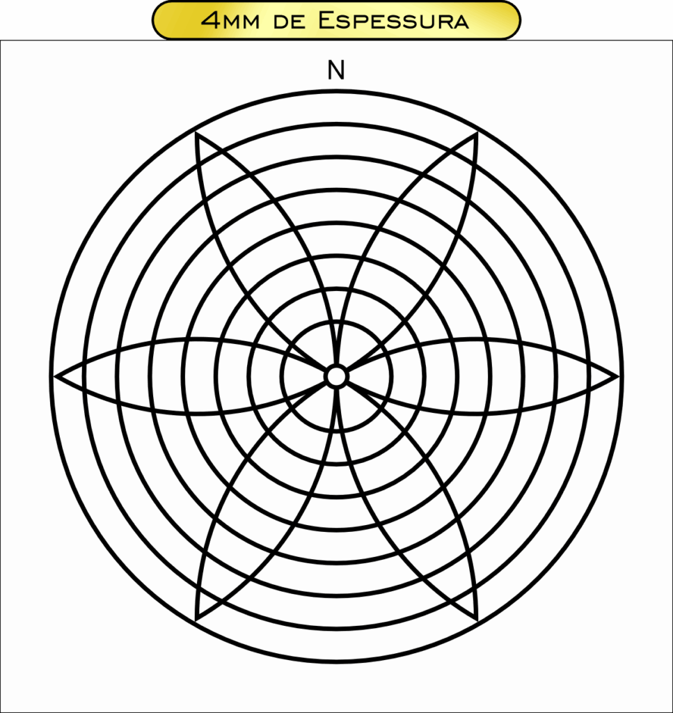 Descrição: Gráfico emissor derivado do famoso labirinto da Catedral de Chartres, símbolo do caminho interior e da busca espiritual. Utilizado na radiestesia como dispositivo de emissão de alta complexidade, atua na harmonização energética profunda de pessoas, ambientes e animais, equilibrando fluxos vibracionais sutis.