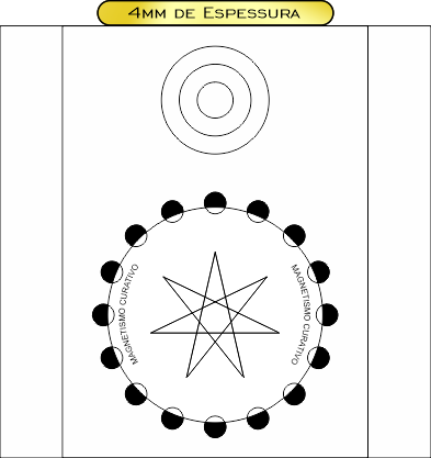 Descrição: Gráfico de proteção psíquica considerado o primeiro modelo anti-magia desenvolvido dentro da radiestesia moderna. Atua estimulando os mecanismos inconscientes de autodefesa energética, bloqueando interferências e ataques psíquicos ritualísticos. Possui um norte de forma artificial representado pelo círculo vazio, o que potencializa sua ação protetora.
